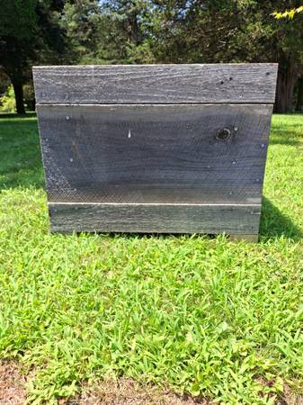 Rough cut pine planter with treated wood base Width:26” Depth: 26” Height: 21.5” If still advertised then it is still available Cash and pick up only