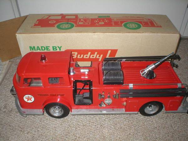 This is a Nice Vintage Buddy L Texaco Fire Engine with the original Box. Its complete with all ladders, hoses, instuctions, hand crank for bell, hose adapter, dome light and front bumper. Serious Buyers only - No low ballers. If its listed - I still have it. Voicemails only and i will return your call. eight six zero, six zero eight, two two eight zero show contact info